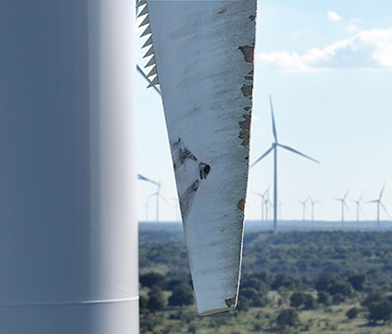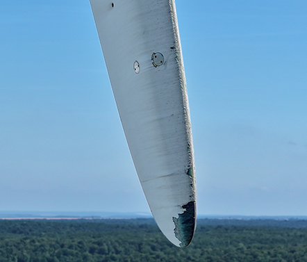 Les pales des éoliennes sont constamment exposées à la pluie, à la poussière et aux particules en suspension dans l'air. Au fil du temps, le bord d'attaque s'use. Si elle n'est pas prise en compte, l'érosion peut réduire la production annuelle d'énergie de jusqu'à 5% et, à terme, de graves problèmes structurels.